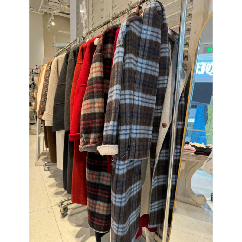Эта ткань, обозначенная как артикул ZZH25004, представляет собой тяжелый тканый текстиль, состоящий из 50% шерсти и 50% других волокон. При массе единицы площади 950 г/м материал демонстрирует значительную плотность и толщину. Поверхность имеет клетчатый узор, сочетающий розовые, коричневые и белые тона в структурированной сетке. Такая характеристика веса способствует ветроустойчивости ткани и ее теплоизоляционной способности. Состав шерстяной смеси влияет на терморегулирующие свойства ткани. Эти технические параметры делают этот тканый материал пригодным для изготовления зимних пальто, где требуется существенная защита от низких температур.