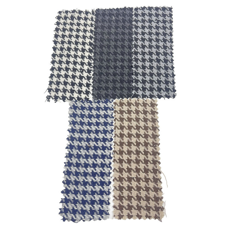 Эта ткань, обозначенная как артикул 3946, представляет собой тканый текстиль, состоящий из 10% шерсти и 90% других волокон. При массе единицы площади 450 г/м он представляет собой конструкцию среднего веса. Темно-серая поверхность украшена узором «гусиные лапки», созданным с помощью особой техники плетения, позволяющей создавать ломаные клетки или четырехконечные формы. Этот классический геометрический мотив характеризуется повторяющимся контрастным тональным эффектом. Состав смеси шерсти способствует терморегуляции и устойчивости ткани. Благодаря этим техническим характеристикам получается материал с определенной структурой рисунка и структурной прочностью, что делает его применимым для толстовок, где требуется визуальное определение рисунка и долговечность.
